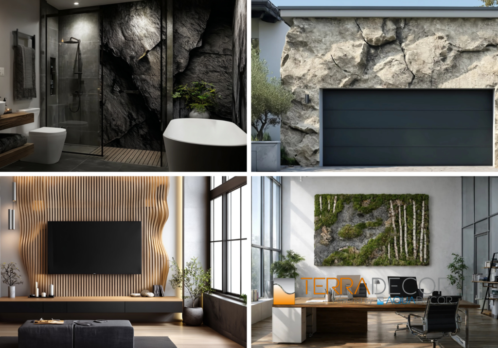 Echte Natur an eine Wand zu bringen, erfordert erheblichen Aufwand – besonders im Innenbereich – und ist in den meisten Fällen nicht umsetzbar. Aber was wäre, wenn sich Natur originalgetreu nachbilden ließe, sich leicht montieren ließe und genauso realistisch aussähe? TerraDecor ist spezialisiert auf ultrarealistische Steinstrukturen, verschiedene Holzimitate und weitere 3D-Dekore – erhältlich als Rollenware oder modulare Paneele. Mit über 25 Jahren Erfahrung bringen wir Natur an Ihre Wände – mit der Optik echter Natur. Unsere Produkte sind leicht, äußerst langlebig sowie beständig gegen Wasser, Hitze, Stöße und Chemikalien. Sie können sogar mit milden Scheuermitteln gereinigt werden und bieten eine lebenslange Garantie. Außerdem sind sie vollständig umweltfreundlich. Über unsere weltweit anerkannte Marke Aquadecor Backgrounds produzieren wir Aquarienrückwände, bei denen absolute Materialsicherheit entscheidend ist – so wird sichergestellt, dass keine schädlichen Stoffe in die Umwelt abgegeben werden. Von Küchenrückwänden und Duschwänden bis hin zu Wohnbereichen und Akzentwänden kann die TerraDecor-Verkleidung praktisch überall installiert werden. Die Montage ist schnell, sauber und einfach – ohne schwere Arbeiten oder professionelle Werkzeuge. Kleben Sie die Paneele einfach mit Schaumkleber oder befestigen Sie sie mit Schrauben. Jedes Projekt wird vollständig nach Maß gefertigt. Wählen Sie Ihre bevorzugte Farbe, Stärke und Oberfläche, und wir setzen Ihre Vision um. Wir liefern weltweit. Wenn Sie das inspiriert hat, kontaktieren Sie uns gerne und teilen Sie Ihre Idee mit uns.