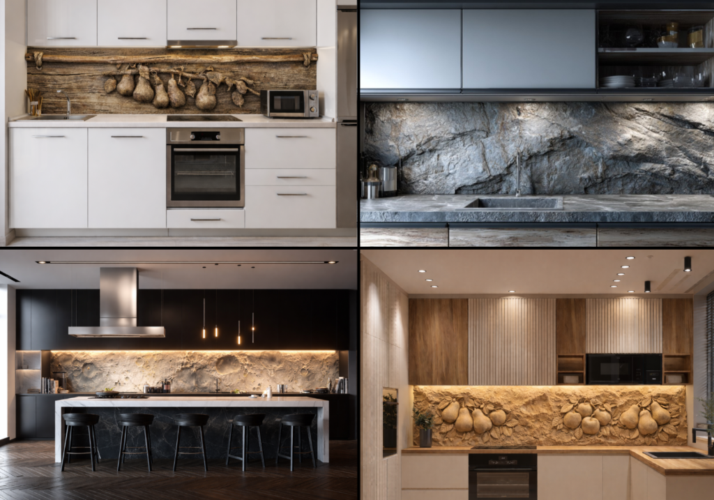 TerraDecor-3D-Küchenrückwandverkleidung funktioniert jedoch anders. Unsere Materialien sind feuchtigkeitsbeständig und halten der täglichen Nutzung stand, ohne Struktur oder Optik zu verlieren.