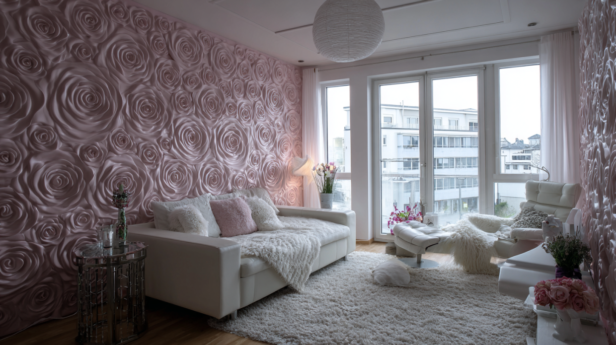 Pink Roses Bedroom Wall